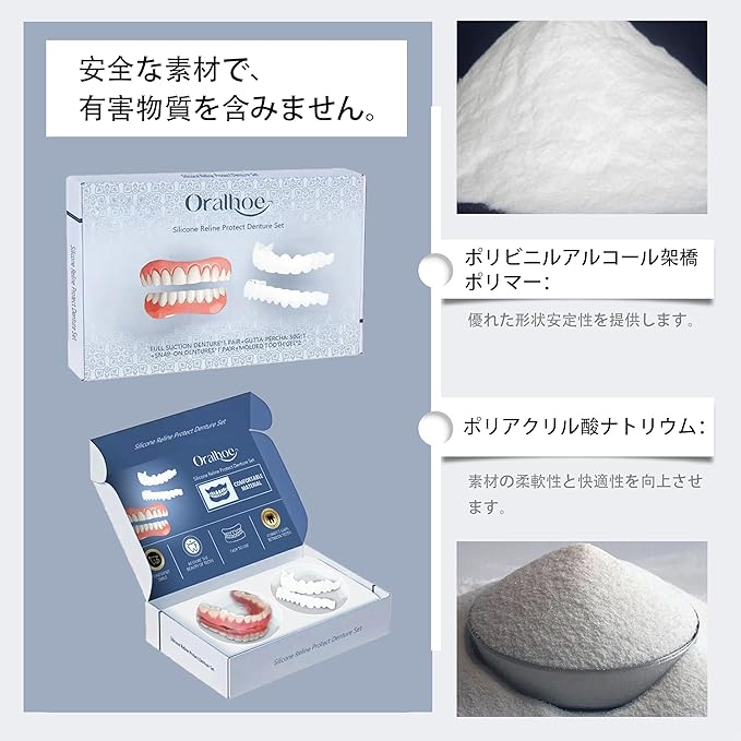 簡単装着: シリコン製の入れ歯は、着脱が容易で、快適な装着感を実現します。