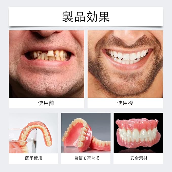 上下セット: 上顎と下顎の両方に対応する入れ歯セットで、自然な見た目を提供します。