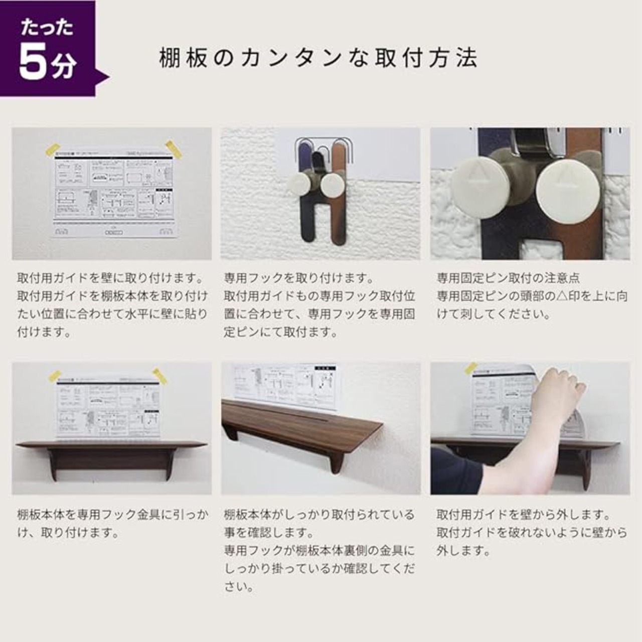 この神棚板は取付専用の台紙、石膏ボードピンを使用することにより、簡単に安全に短時間で取り付け可能です。