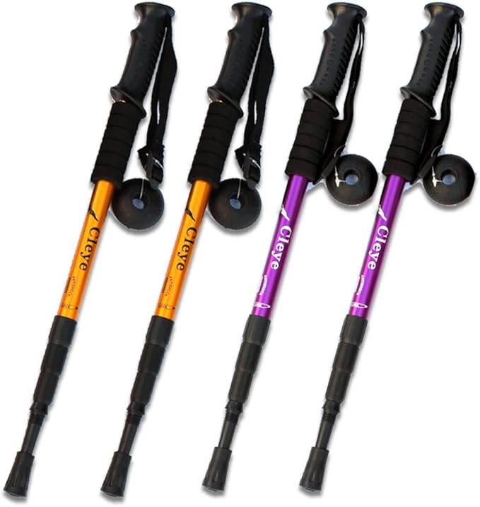 トレッキングポール 軽量 登山用ストック ウォーキングポール 登山 アルミ製 I型 伸縮 長さ調整 コンパクト 登山杖 滑り止め 登山 ハイキング ウォーキング トレッキング ゴールド & パープル 各2本づつ | etshop