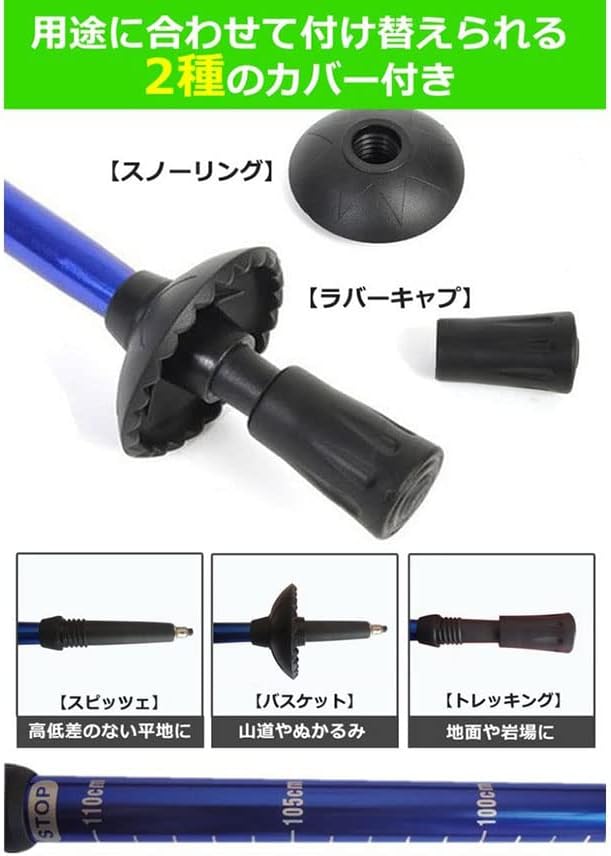 【多数の地形に適す】トレッキングポールの先端が上質なタングステン合金を採用しています、高い硬さ、耐磨耗、良い強さと靱性。着脱可能な岩場、湿地、雪道、アスファルト道路専用のラバースリーブを付いて、いろいろな環境に利用できます。