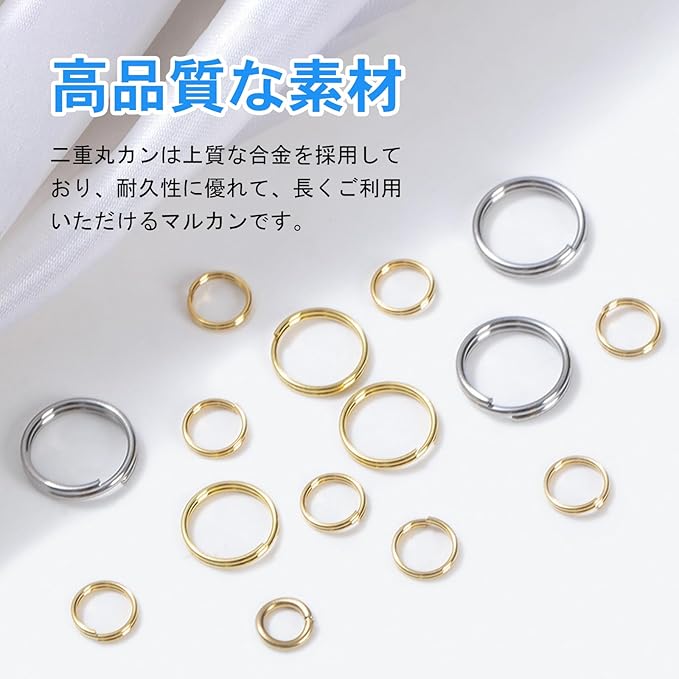 【高品質な素材】 二重丸カンは上質な合金を採用しており、耐久性に優れて、長くご利用いただけるマルカンです。二重構造で、耐久性、光沢、防錆性、汎用性、軽量性、高い伸縮性を備えています。耐食性があるため、錆びにくく軽量で、弾力性が高いので、大きく変形をさせたり、頻繁に鍵をつけ外ししたりする用途にもできです。平リングは二重構造でかなり頑丈なので大切な鍵やキーホルダーの紛失防止に、しっかり閉じました。