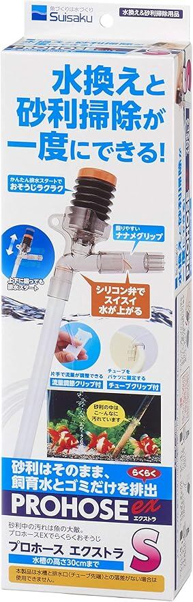 グリップ部分のスターターポンプを数回押すだけで簡単に排水がスタートし、水槽内のレイアウトを崩すことなく観賞魚や水草にもやさしい水換えを実現します。●水槽サイズや砂利の種類にあわせて排水のスピードを調節することも可能です。パイプを底砂に差し込むだけで砂利の中の老廃物を古くなった飼育水と一緒に排水します。●水槽の高さ30㎝まで