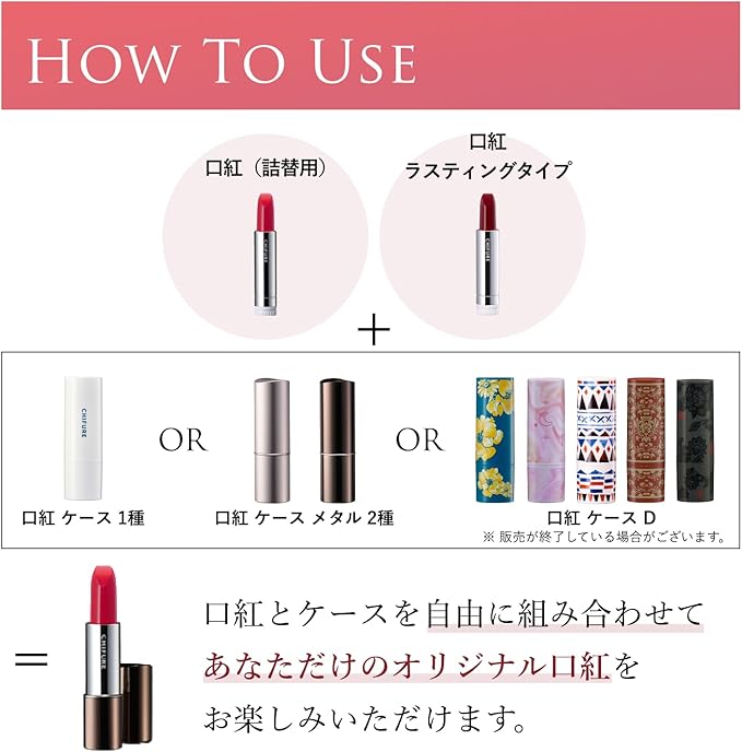 【ケースで自由にカスタマイズ】別売りの口紅ケースと組み合わせて、オリジナルの口紅を楽しめます。