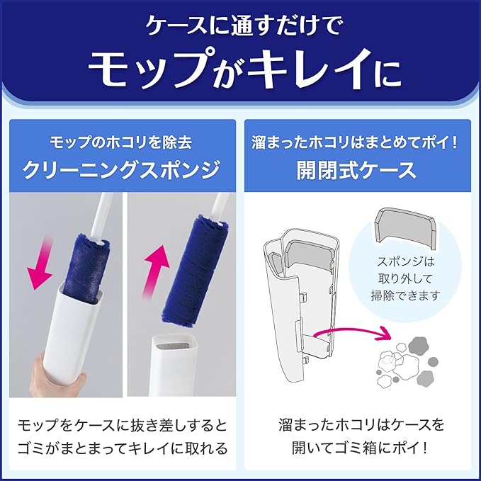 くり返しつけるホコリ取り。サッと使えて、サッとキレイ! かんたん時短のおそうじモップです。