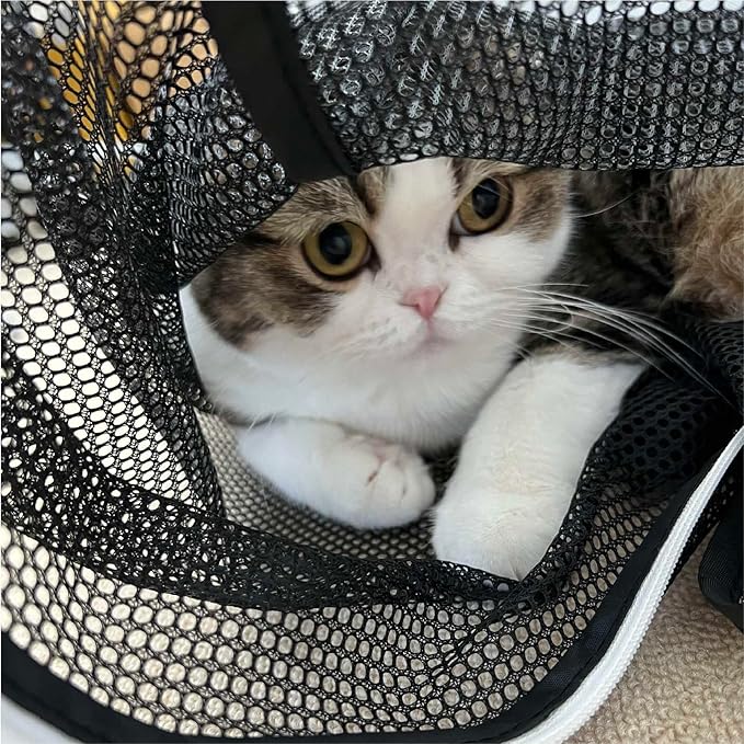【キャリーに入ってもらうのもラクラクに】キャリーが苦手な猫の場合、入ってもらうだけで一苦労。先にネットに入っておいてもらえば、ネットごとキャリーに入れるだけで楽ちんです。