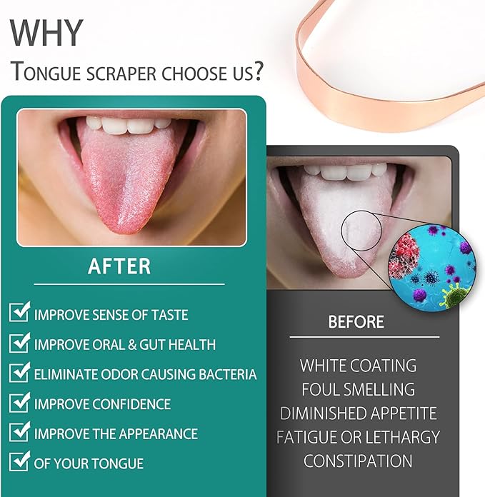 [口臭を治し、細菌を排除する]-適切な舌スクレーパーは、利用可能な口臭の最良の治療法です。これらの高品質の純銅の舌スクレーパーで数秒で舌をきれいにします。あなたの新しいタングスクレーパーはあなたの口をきれいにするだけではありません。これらの舌スクレーパーは、不安や自尊心の低さを取り除き、他の人からスポットライトを「奪う」でしょう。舌をこすり落とす洗浄を最大限に行うには、最高の舌スクレーパーが必要です。もう探す必要はありません。