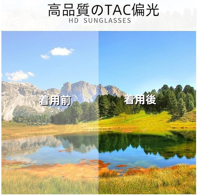 ☀【偏光レンズ】クリアな視界を与える偏光サングラス、道路標識がギラツキや乱反射、道路面が反射して白線が見えない、ランニング中、下方からの光の照り返しで目が疲れる、ゴルフでグリーン上の起伏が把握しにくい様々なところを偏光サングラスでその光がしっかりカットでき、目に優しく保護です。