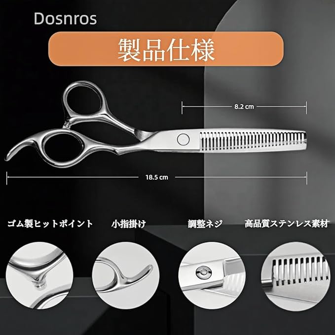 【商品詳細】スキバサミ 材質: 高硬度ステンレス製。サイズ :全長18.5cm (全長とは小指掛けから刃先までの長さです。)刃長8.2cm(刃長とはネジの中心から刃先までの長さです。)