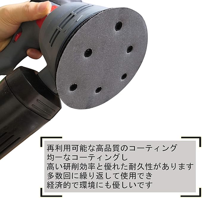 【取り換えが簡単】 直径125mm/6穴タイプのペーパーに対応。粘着性が優れて、とても便利に取り外しや交換することができます。異なる研削ニーズに従って砂の異なるカテゴリーが素早く変えることができ、操作が簡単です。