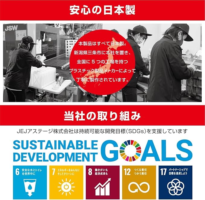 用途と収納するものを想定したサイズ設定にし、 使用シーンに合わせた「ちょうど良い」サイズ展開。断熱材厚み約2倍(当社従来品比較)で保冷力UP。イスとしても使用可能な強度。定番になりつつある600mL、1Lペットボトルの収納に対応。フラットなフタ形状でサイドテーブルとしても使用可能。積み重ね可能。同品番同士の他、12Lと16L、26Lと34Lが可能。南京錠がかけられる「鍵穴」付き。