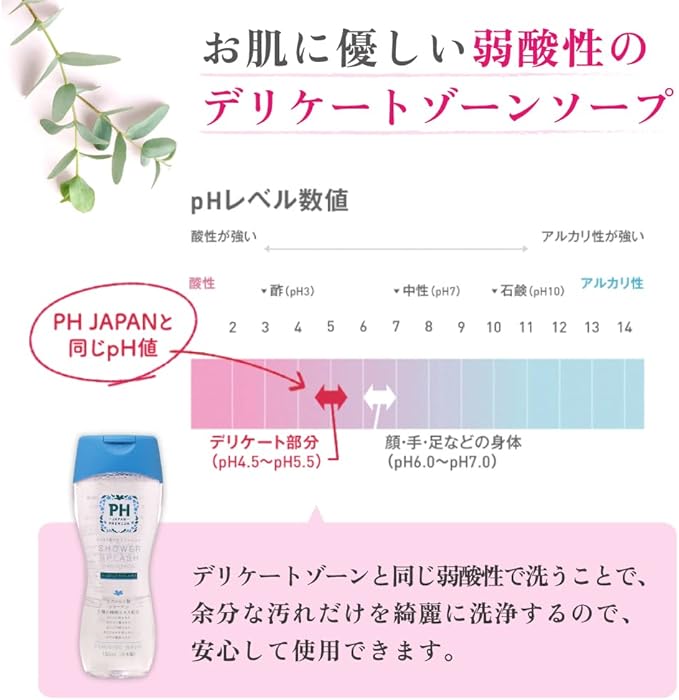 【弱酸性で毎日のお手入れ】デリケートゾーンと同じ弱酸性で洗うことで余分な汚れだけを取り去り、本来のお肌の状態を保ちます。生理時や不快な時、毎日のお手入れにご使用ください。