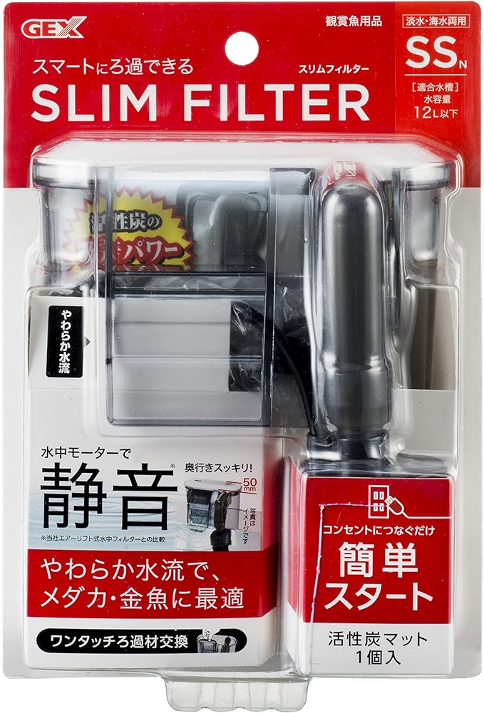 12L以下の水槽用外掛け式フィルター!奥行きスリムタイプだから水槽まわりすっきり。使用環境:海水・淡水。交換ろ過材:スリムマット各種、スリムフィルター用スポンジカセット。ろ過槽容量:0.38L