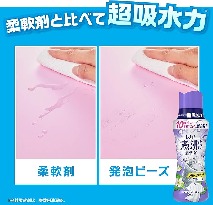 衣類の煮沸レベル消臭*1 洗濯槽の防カビ*2 まで! レノア 超消臭 煮沸レベル消臭 抗菌ビーズ 消臭+防カビ クリーンフレッシュ