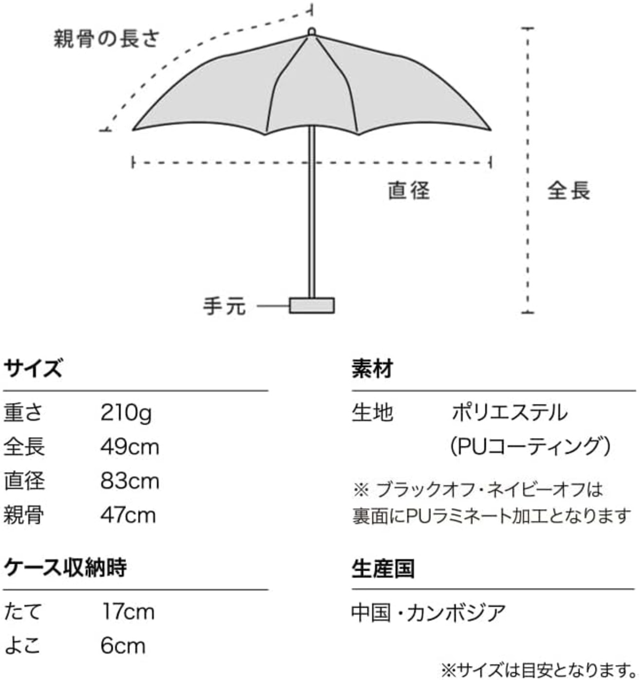 傘本体の性能を示す数値ではございません。