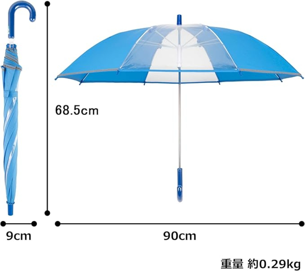 サイズ:約6 9 68.5cm 重量:約0.29kg 開いた時の傘の直径:90cm