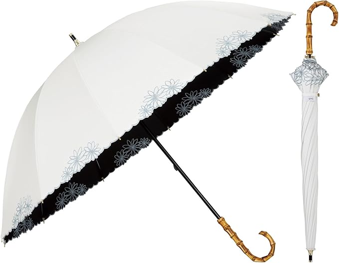 Wpc. 最強の日傘 UVO(ウーボ)長傘/12K 刺繍フラワー オフ《遮光率&UVカット率100%/UPF50+/遮熱/晴雨兼用》親骨55cm レディース 女性 バンブー 持ち手おしゃれ 可愛い 丈夫 大人可愛い カジュアル UVO12K-07 | etshop