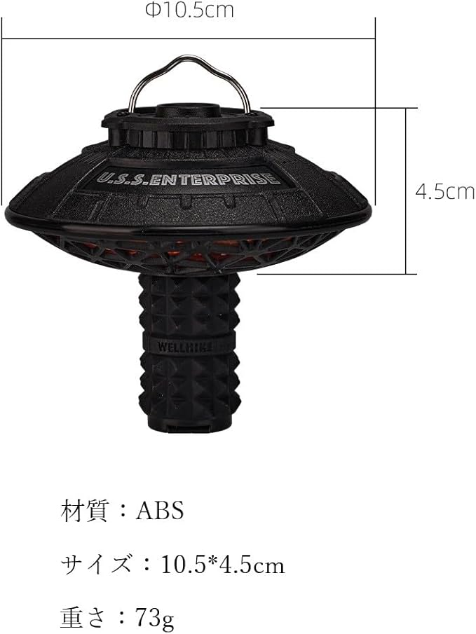 【仕様】商品名:ゴールゼロ UFO形ランタンシェード;高さ:4.5cm、直径:10.5cm;重さ:約73g;材質:ABS;カラー:ブラック;適用ランタン:ゴールゼロ及び市販の同サイズの小型LEDランタン