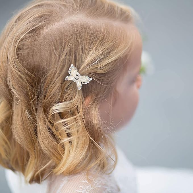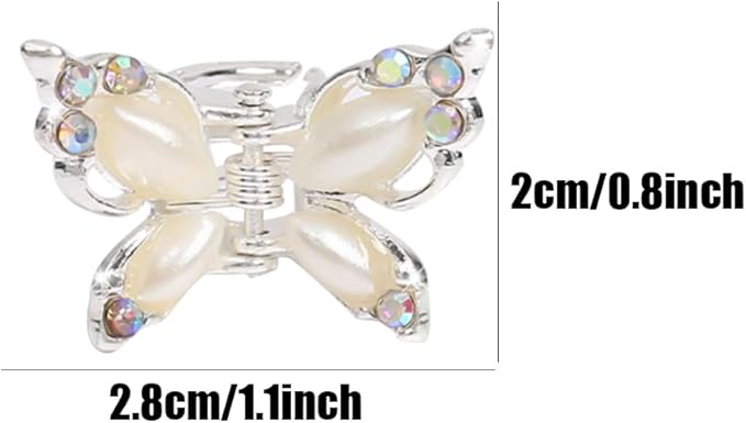 【ミニヘアクリップ】ミニサイズの蝶型ヘアクリップです。クリップにキラキラしているラインストーンが飾って、パールの翼はほんとに美しい。子供にも大人にもおすすめ!