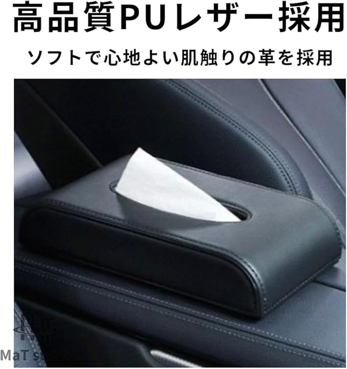 【シンプルなデザイン】高級感の漂うレザー革のティッシュボックスカバーです。流線型のモダンなデザインで愛車のドレスアップにもなります。実用性とデザイン性を兼ね備えたアイテムです。