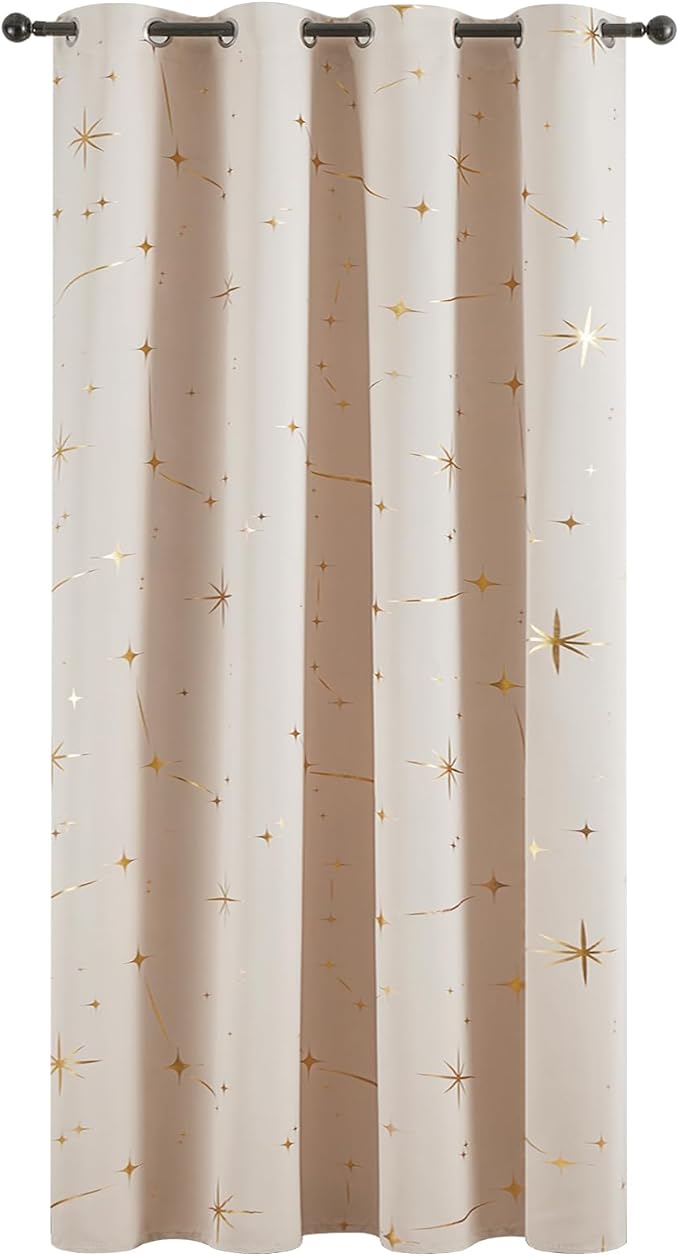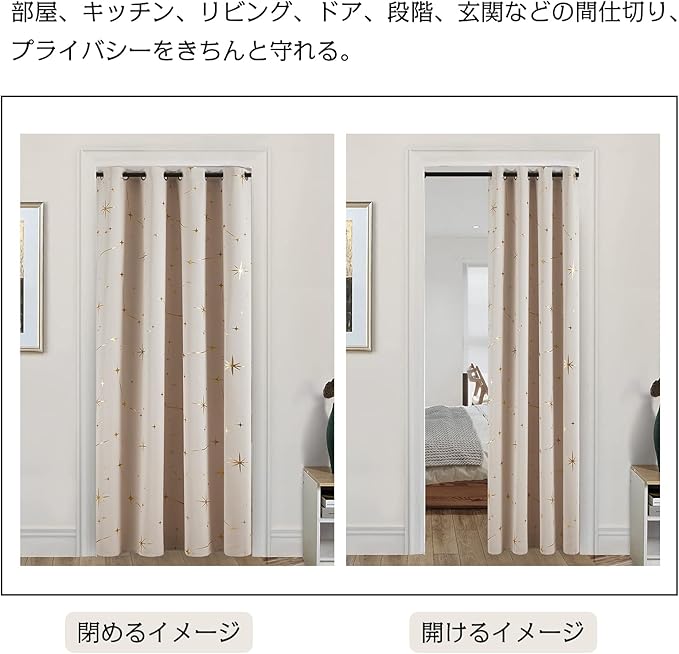 Topfinel のれん 間仕切りカーテン 断熱 カーテン 遮光 星柄 箔プリント 幅100cm 丈180cm 1枚入り ベージュ ハトメ型 突っ張り棒 カーテン 仕切りカーテン ドアカーテン 目隠し 玄関 キッチン リビング