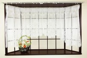 出窓用デザインカーテンアーチタイプ 「ローズ」 内容 :出窓対応デザインカーテン1枚 ・Aタイプフック13個付 商品到着後すぐにご使用になれます。