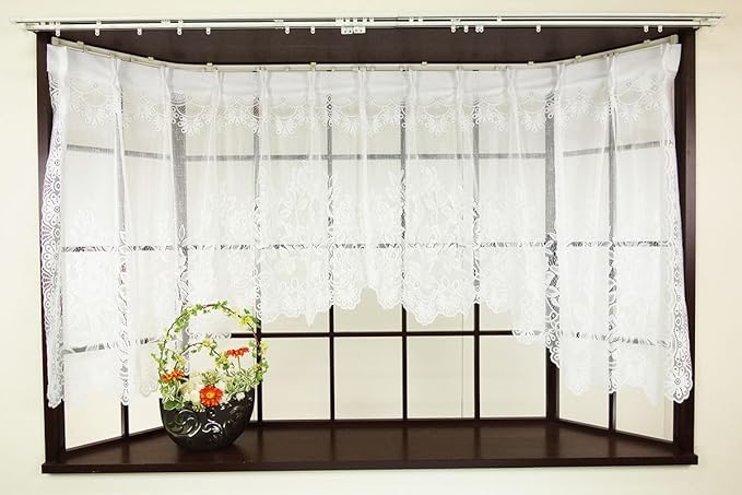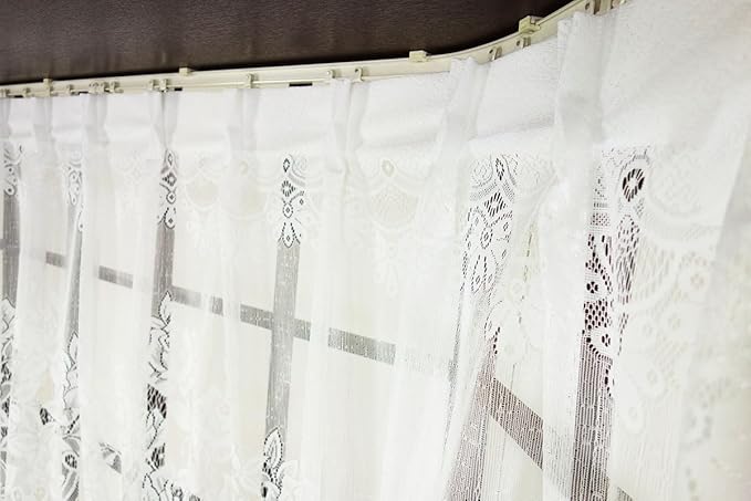 サイズ :幅195cm 高さ(丈)85cm(アーチ中央部 65cm) ※カーテンレールに取り付けるカーテンフック付なので、購入後すぐに取り付けできます。 ※サイズが合えば普通窓にも取り付け可能です。