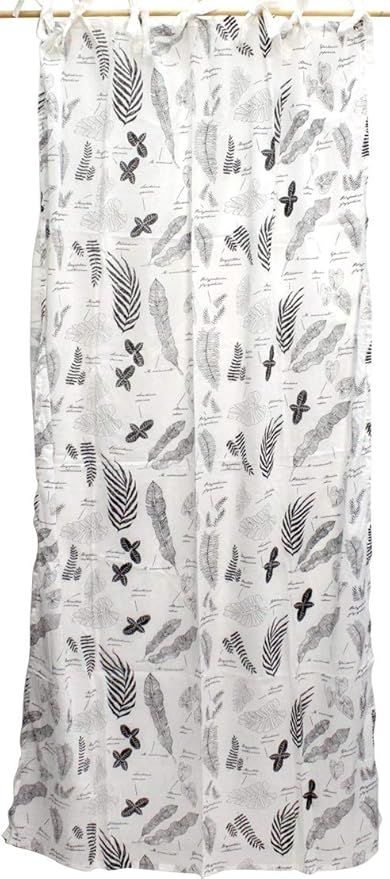 モノクロでボタニカル・イラストが描かれたインドコットンのカーテン