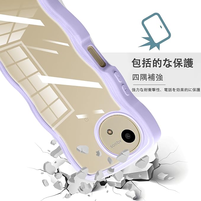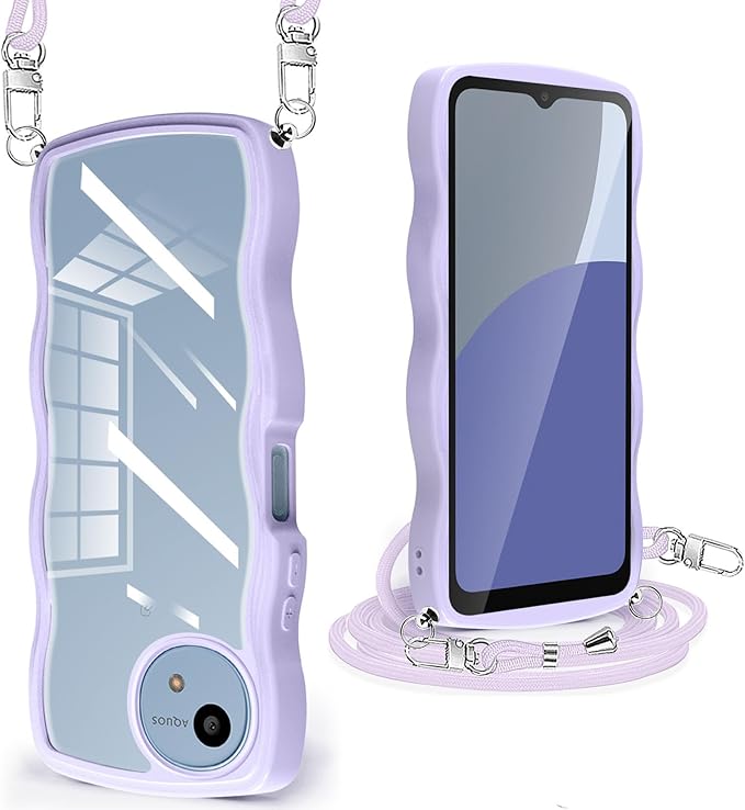 AQUOS Wish4 ケース クリア ショルダー ストラップ付き Aquos Wish 4 SH-52E ケース カバー かわいい 波状フレーム 人気 耐衝撃 透明 アクオス Wish4 スマホケース 首かけ 肩掛け TPU 薄型 軽量 ワイヤレス充電対応(パープル) | etshop