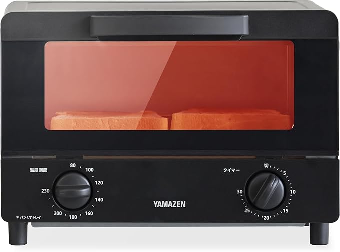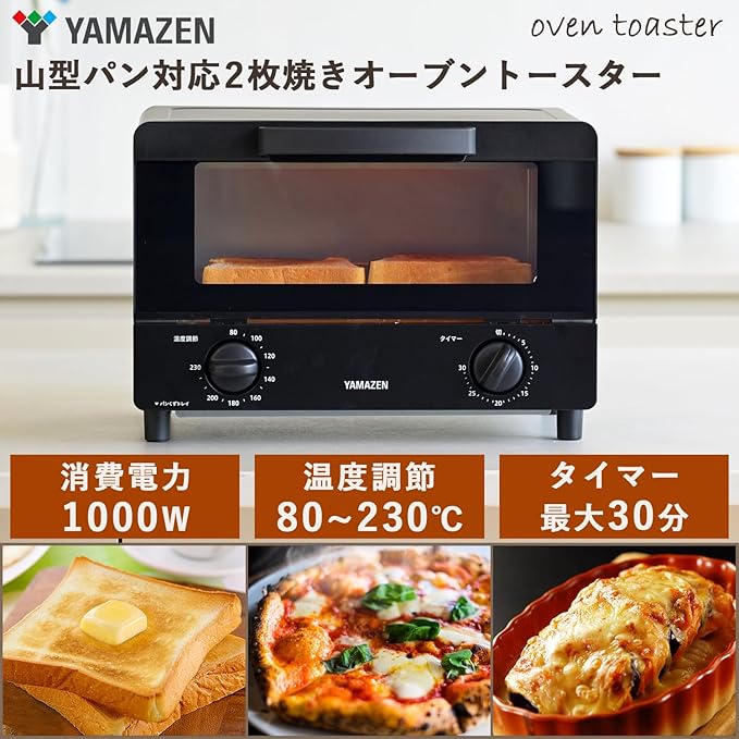[山善] トースター オーブントースター 一人暮らし 二人暮らし トースト 2枚焼き 山型パン対応 1000W タイマー30分 温度調節機能付き 受け皿付き ブラック YTRB-C100(B)