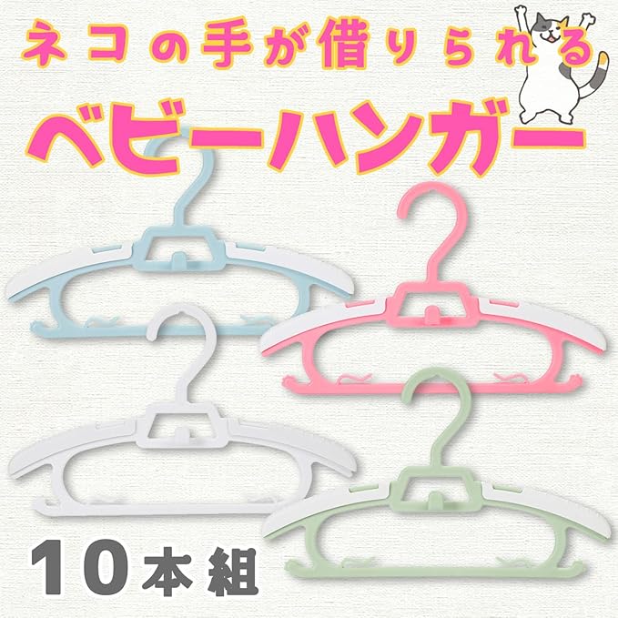 特徴 【かわいい】◇ズホン掛けが猫の手に、タオル掛けがネコのシッポになっています ◇可愛いハンガーですのでお子さまの洗濯物干しのお手伝いデビューにもおすすめです ◇かわいいデザインなので、出産祝い、プレゼント、お祝いにおすすめです, 【たくさん】◇10本セットなので、汚すことがお仕事の子どもたちの服もたっぷり洗濯してたっぷり干せます, 【セット内容と保証書】 ◇カラーはパステルカラーがおしゃれな4色 ◇10本組みなので色々な場所で使えます ◇プレゼントや景品、賞品、ギフトにも人気なので、おすすめです, 【便利】◇ハンガーは赤ちゃんや子ども服に合うサイズです 赤ちゃん用、子ども用、ベビー用、新生児用、赤ん坊用、キッズ用としてご使用できます ◇ショルダー部が太くなっているので、干しやすく乾きやすいハンガーです ◇材料:PP素材(耐紫外線/耐UVカット仕様), 【多機能】◇ハンガーのショルダー部はスライドしサイズ調整ができるため、赤ちゃんが大きくなってもハンガーを伸縮させることで長く使えます ◇ショルダー部には滑り止め加工がされているので滑りにくくなっています ◇下着などを掛けるフックが2箇所に付いています。【かわいい】◇ズホン掛けが猫の手に、タオル掛けがネコのシッポになってい… 表示を増やす