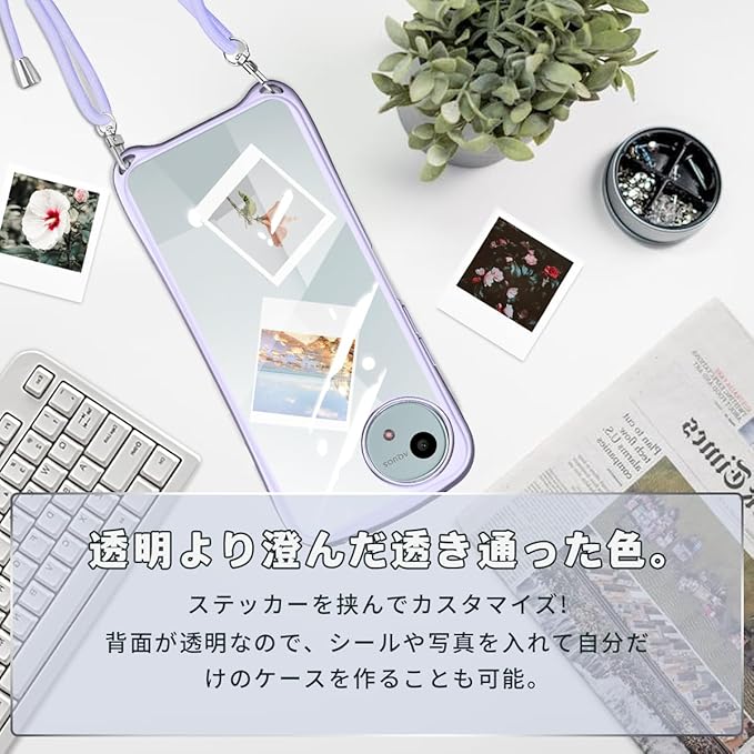 AQUOS wish4 SH-52E ケース クリア ショルダー ストラップ付き アクオスウィッシュ4 カバー 透明 肩掛け 斜めかけ TPU シリコン メッキ加工 耐衝撃 全面保護 薄型 韓国 可愛い 縄掛け アクオス wish4 sh-52e スマホケース (スターリバーシルバー) | etshop