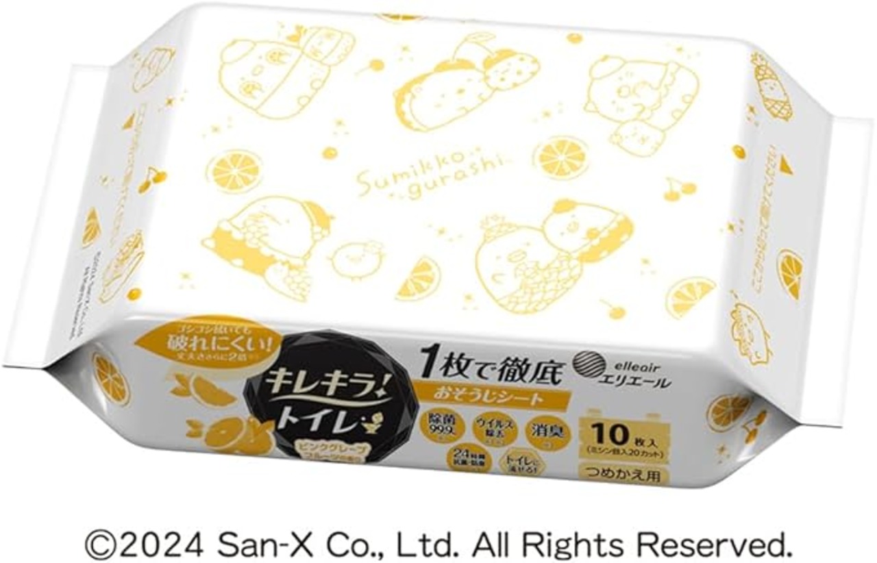 エリエール <すみっコぐらしデザイン企画品 > キレキラ! トイレクリーナー 1枚で徹底おそうじシート ピンクグレープフルーツの香り つめかえ用 80枚(20枚 4個)