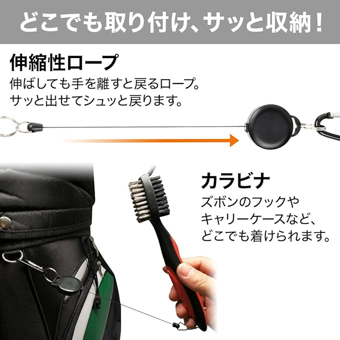 アイアンブラシ:ナイロン・ステンレス 両面ブラシ / ステンレスニードル / 防滑ゴムブリップ / 伸縮式リール&カラビナ付き