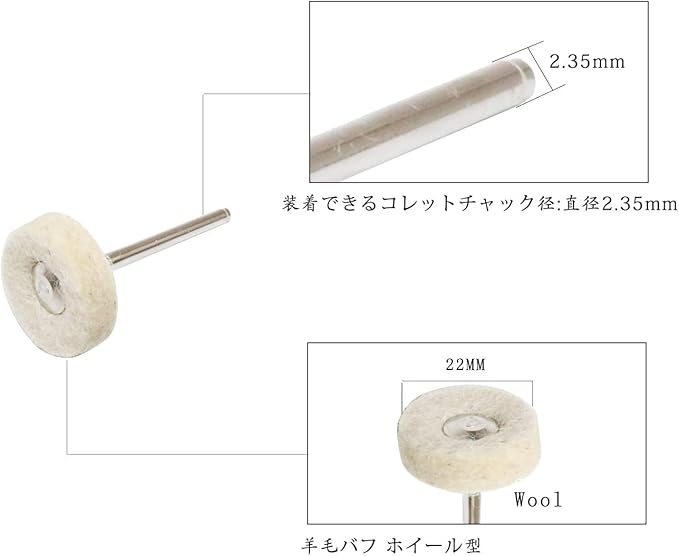 マンドレル軸 は2.35mmで柔らかい線材を高密度に圧縮したバフです。