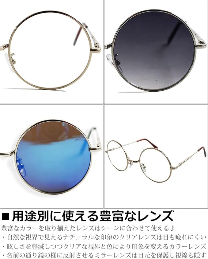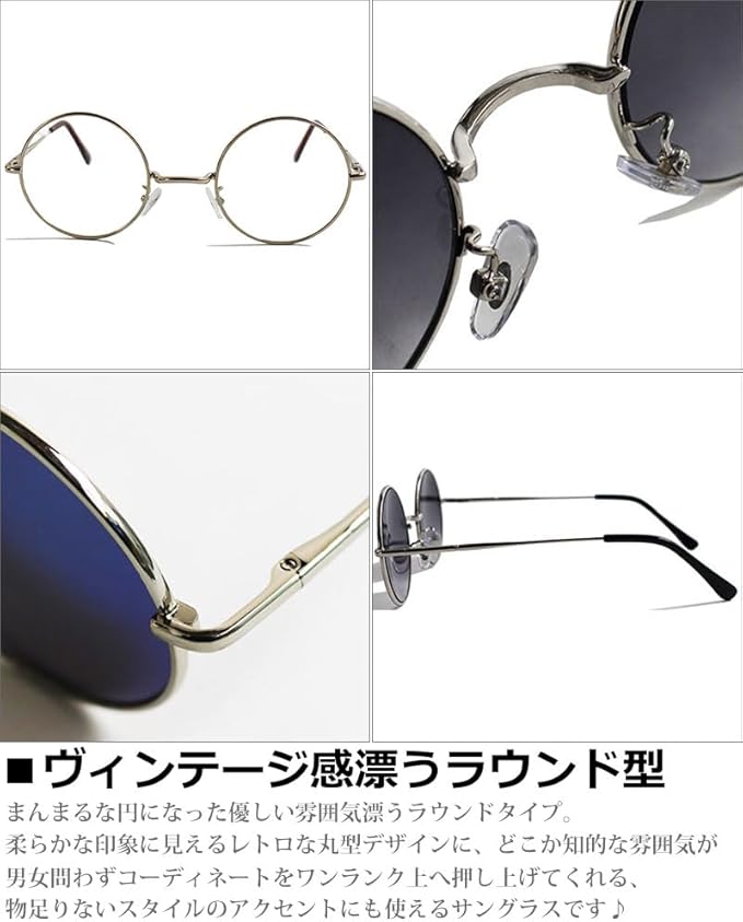 【ラウンドタイプ】 通称『丸メガネ』で人気のラウンドサングラス。 丸レンズが知的なアーティスティックを演出してくれます。 【メタルフレーム】 上品な光沢とクールで繊細なラインの細フレームがラグジュアリーな作りとなっております。