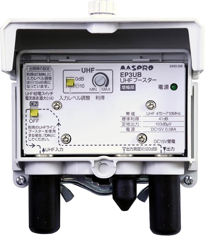 ●UHF帯域を増幅するブースターです。(FM・VHF帯域は伝送しません)