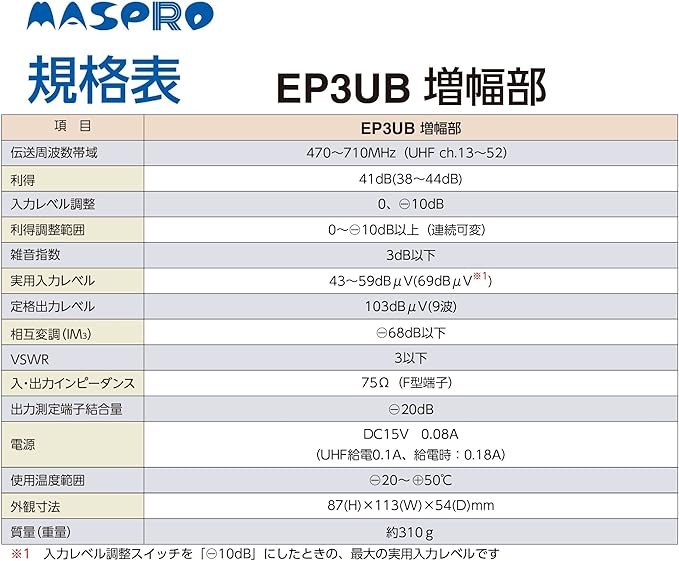 外観寸法(増幅部):87(H) 113(W) 54(D)mm●外観寸法(電源部):56(H) 105(W) 34(D)mm ●個装重量:586g