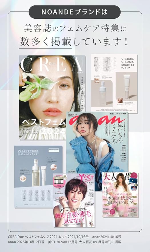 ✅特徴:VIOに乾燥は大敵!圧倒的な保湿力を追求。ノアンデ独自の保湿サイエンスに基づいた3種のヒト型セラミド、トリプルヒアルロン酸、トリプルコラーゲンを配合。