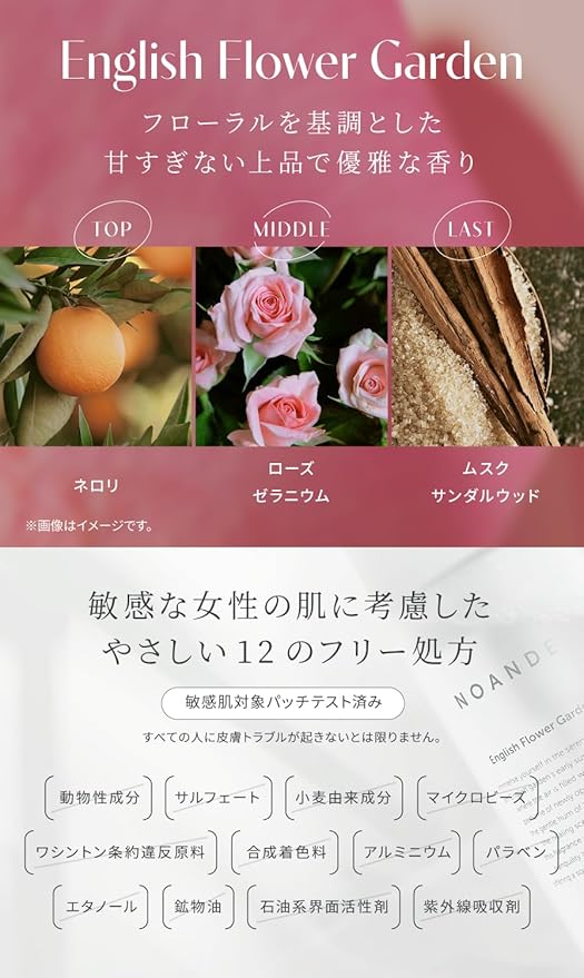 香り サンダルウッド, ゼラニウム, ムスク, ローズ
