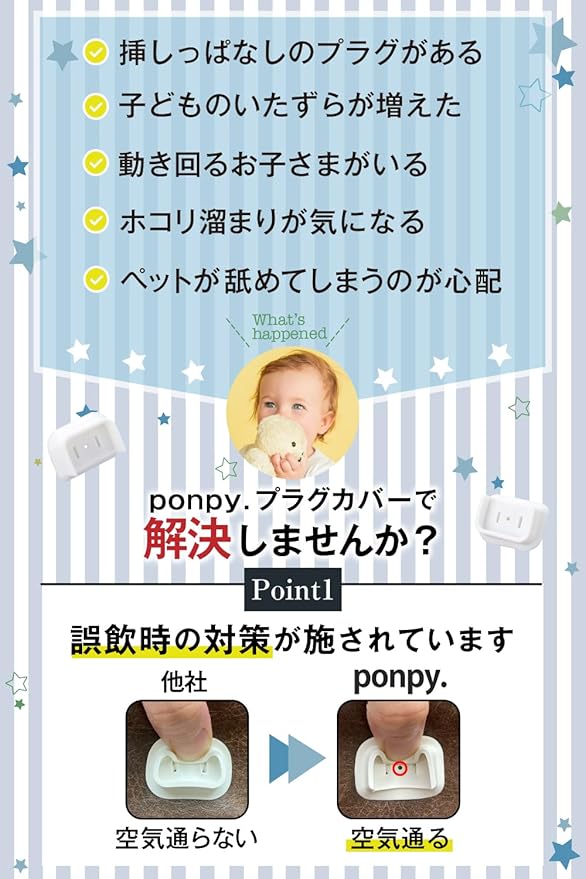 ■【赤ちゃんやペットの安全対策に】小さなお子さんはコンセントに興味津々!ちょっと目を離したスキのヒヤリを防ぎます。 ■【耐熱&絶縁ABS樹脂製】耐熱、耐久、絶縁性の高いABS素材だから安心。しかも無味・無臭・無害の素材でできたコンセントカバーです。 ■【ロック機構付きハンドル】強力なロック機構のついたハンドルで抜け落ち防止設計!小さなお子さんが外すことはほぼ不可能なコンセントキャップ ロックで安心です。 ■【トラッキング火災予防】ほこりや湿気によるコンセントのトラッキング火災を未然に防ぐことにも役立ちます。埃のたまりやすい場所のコンセントにはぜひ取り付けていただきたいコンセントキャップです。 ■【コンセント 火事対策】お家の中の使っていないコンセントはもちろん、業務用としても保育園、幼稚園、老人ホーム、介護施設 などにもご利用いただいています。 ■商品名:コンセントカバー コンセントキャップ 抜けにくい ガッチリロック 【ベビーアドバイザー監修】 コンセントガード 感電防止 漏電 火災防止 ベビーガード セーフティー トラッキング防止