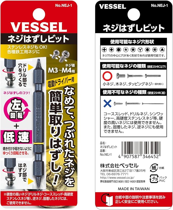 ●穴あけ、ネジはずしの回転方向が左回りで同一の為、間違えにくいです。