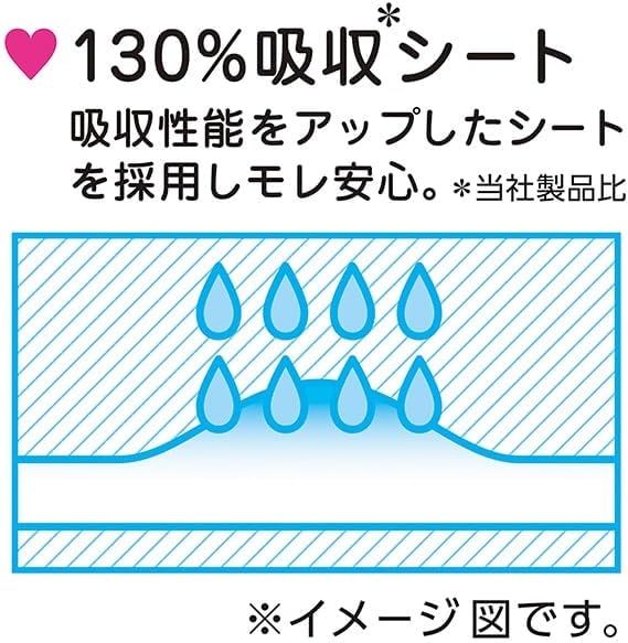 130%吸収*シートとまん中フィット構造で、長時間*でもモレ安心
