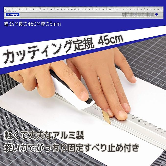 すべり止め、カッティングエッジ、ミゾ付が付いており、便利。