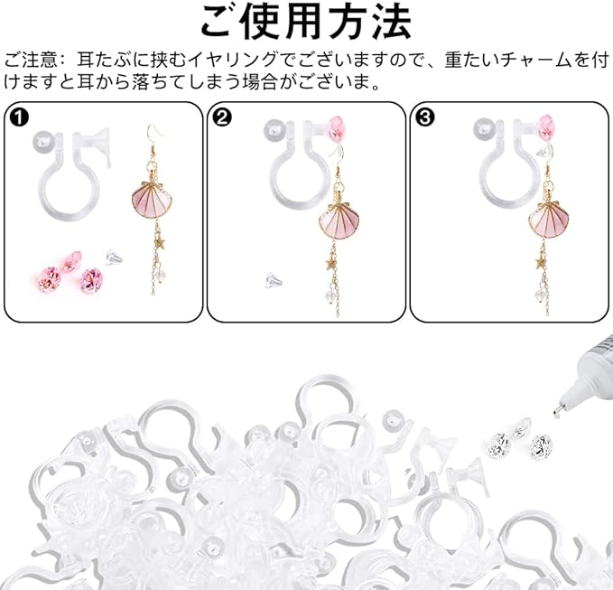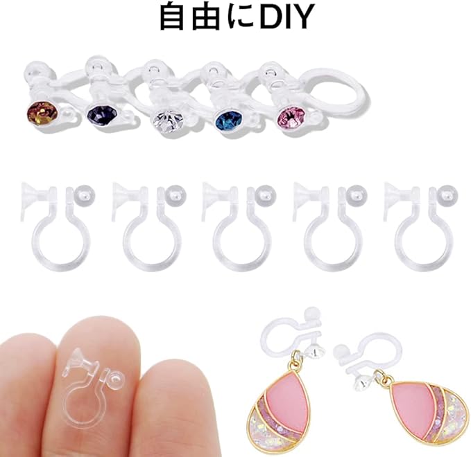 サムコス ノンホールピアス 約50ペア100個 クリア カン付き クリップ式 バネ式 樹脂製 半透明で目立ちづら イヤリングパーツ 耳穴なし ノンホールコンバーター アクセサリーパーツ 手作り DIY用 | etshop