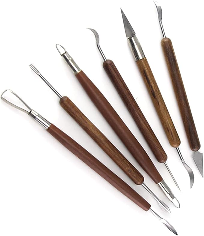 【12種の形状】木製ボディハンドルと二重形状のヘッドを備えた6本セット両端12種の形状で、複数のスタイルから選択して利用できます。この陶芸道具は用途に合わせ様々なツールがありますので、きめ細かい作業が可能になります。