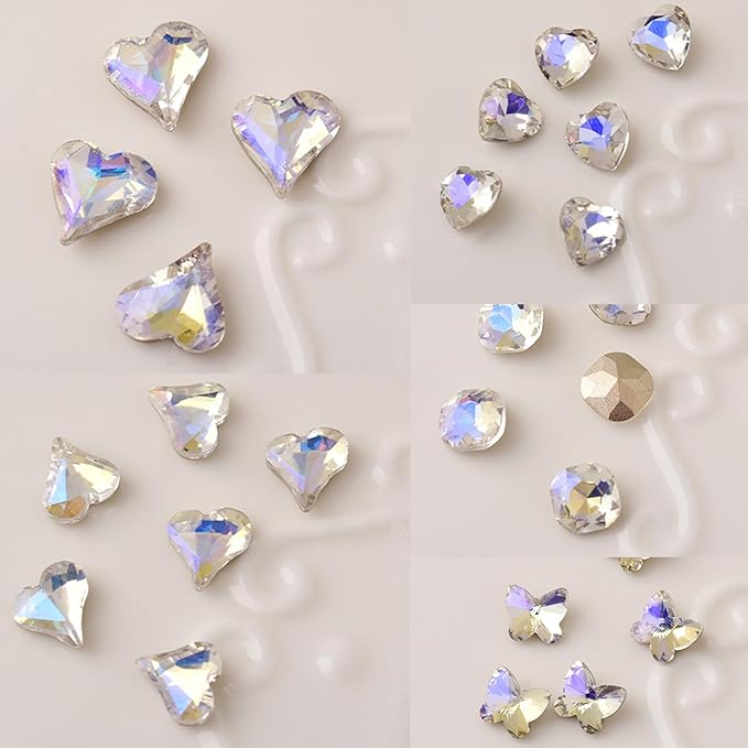 【きらきら】ネイル ガラスストーンはカットが綺麗でキラキラと輝くガラスストーンです。ガラスダイヤモンドは、ガラス素材で作られているため、美しく光沢があり、高級感があります、いつまでも光沢感を保つことができます。ハートのラインストーンはダイアモンドのように切断面を持ち、ご指先をキラキラと輝いています。