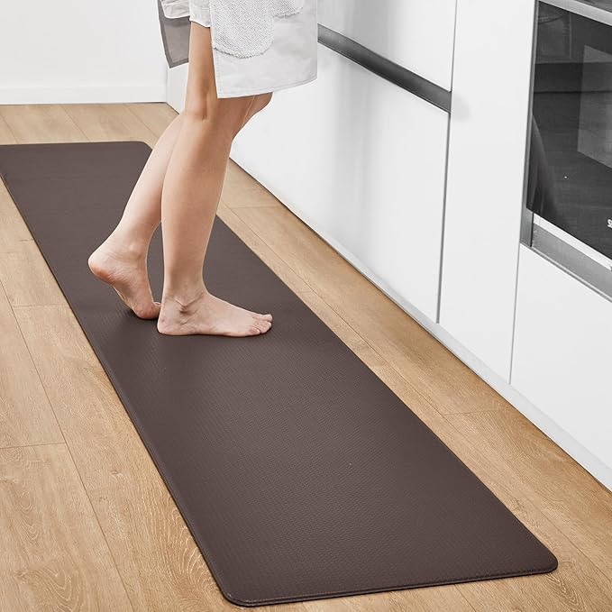 Deconovo キッチンマット PVC素材 撥水加工 滑り止め ブラウン 44cmx240cm 洗濯不要 すべりにくさ 北欧 おしゃれ はっ水 無地 拭ける 厚さ8mm ずれない 台所 マット フカフカ 厚手 防汚