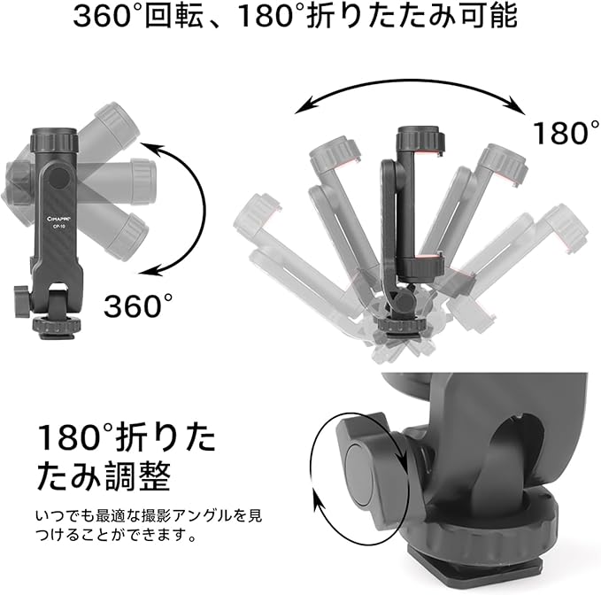 【360度全方位回転】スマホホルダーは360度回転できます、180度の前後反転も実現します、横も縦も撮影可能、お好きな角度で写真やビデオを撮ることができます。