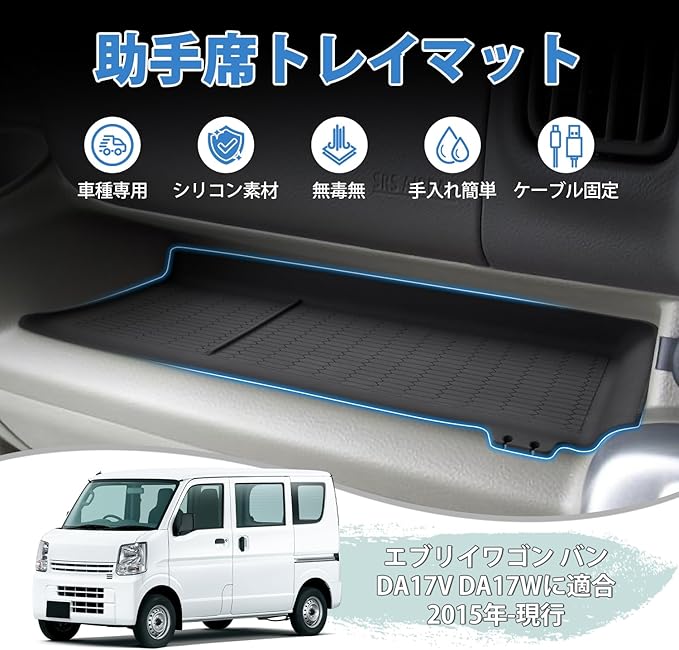 Auto Spec スズキ エブリイワゴン バン DA17V DA17W に適合 助手席 オープントレイマット 助手席トレイ 副操縦士トレイ パネトレイマット ラバーマット ケーブルホルダー2015年-現行 収納ボックス 収納 小物入れ シリコンゴム素材 内装パーツ 取り付け簡単 水洗い インテリア (エブリイワゴン バン) | etshop